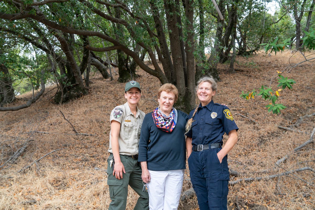 PHOTO: From left: Sarah Minnick, vegetation and fire ecologist for Marin County Parks; Kay White, coordinator of the Pacheco Valle Firewise Committee; Lynn Osgood, fire inspector for Novato Fire Protection District. Photo via County of Marin
