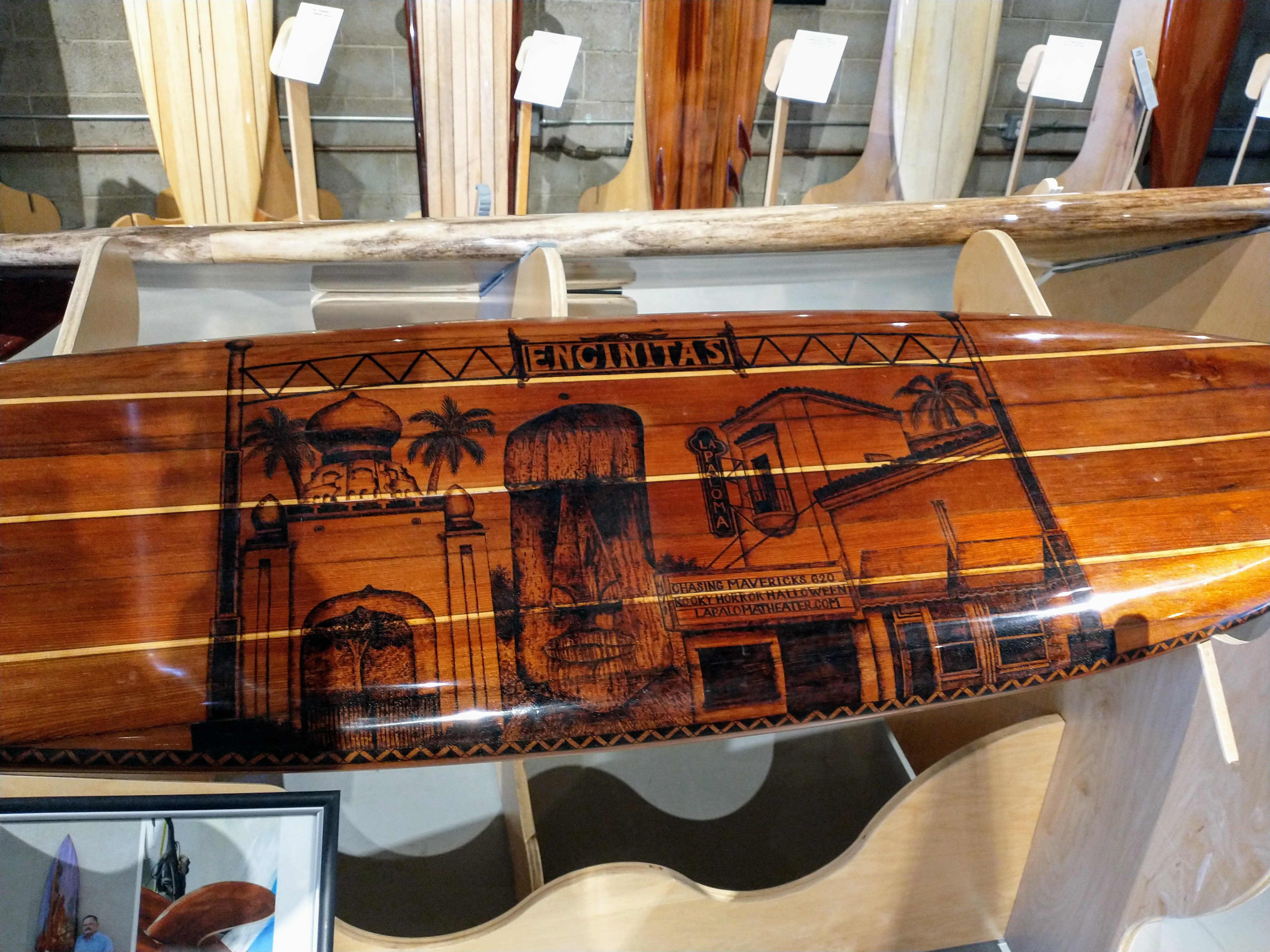 The "Artistry in Wood" collection is surfboards made of various exotic woods by local famous board makers. The level of detail and craftsmanship within every board is strikingly beautiful.