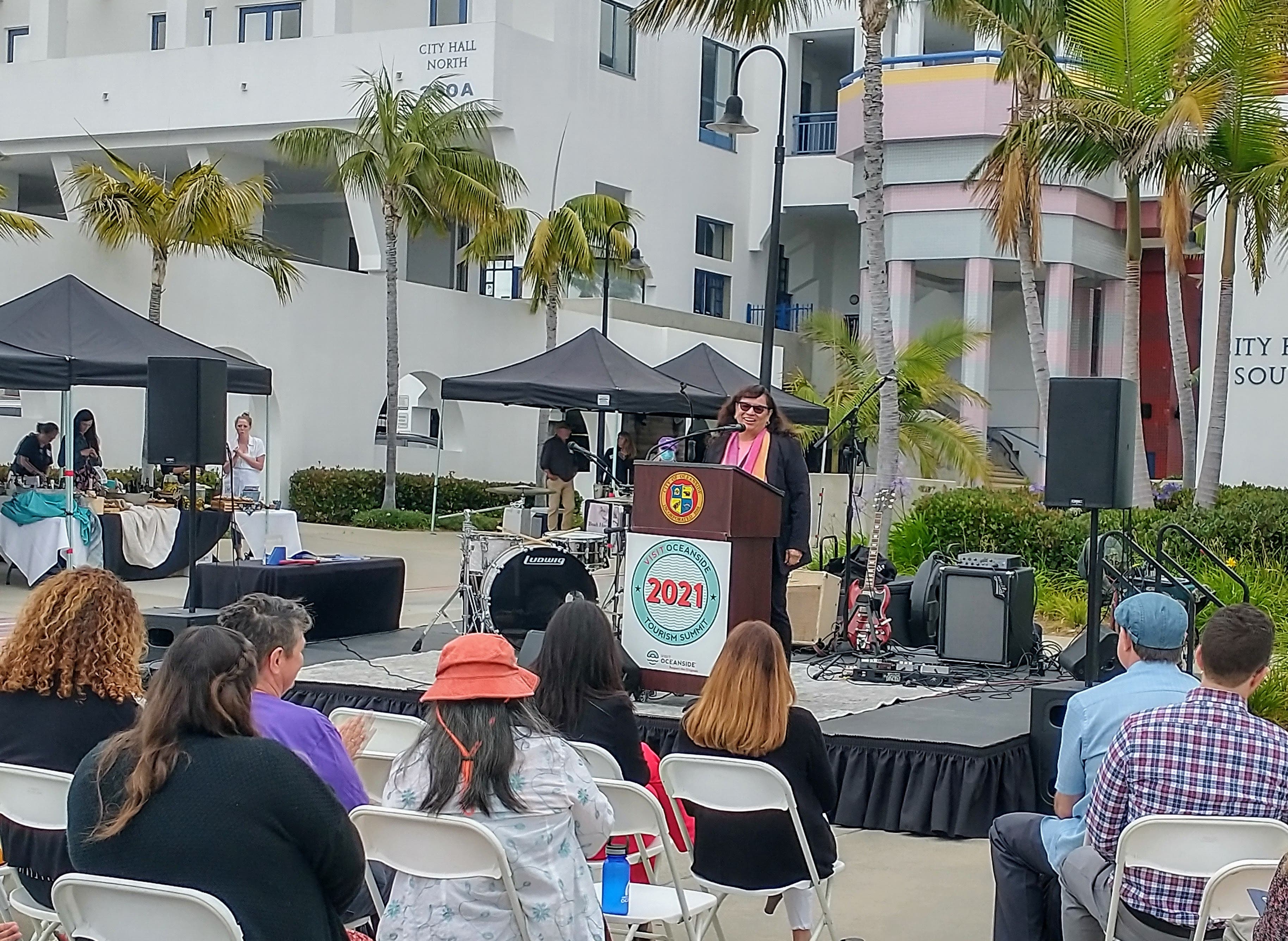 Mayor Esther Sanchez speaking at the Oceanside Tourism Summit.