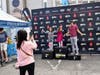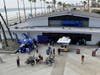 Down at the Pier Plaza the athlete check-in area is in front of the Junior Seau Center with greeters from Visit Oceanside on hand to welcome people while preparations were underway at the finish line with the IRONMAN crew testing the display.