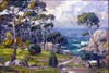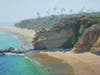 Subject matter ranges from landscapes of lush meadows to depictions of children playing on the beach in settings including Carlsbad and La Jolla.