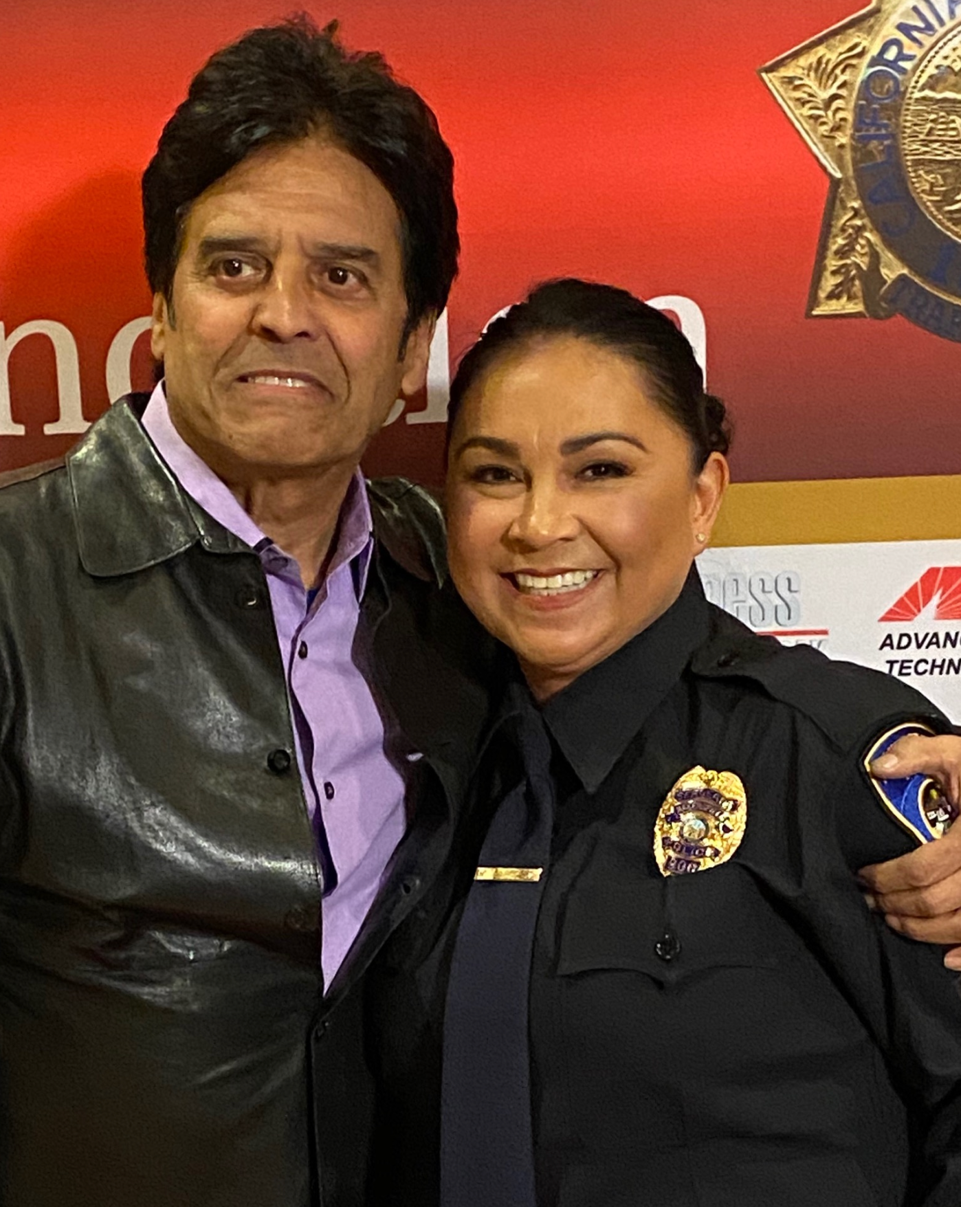 Erik Estrada, of CHIPS fame, and Marcela Haskins. Photo courtesy Bakersfield Police Department.