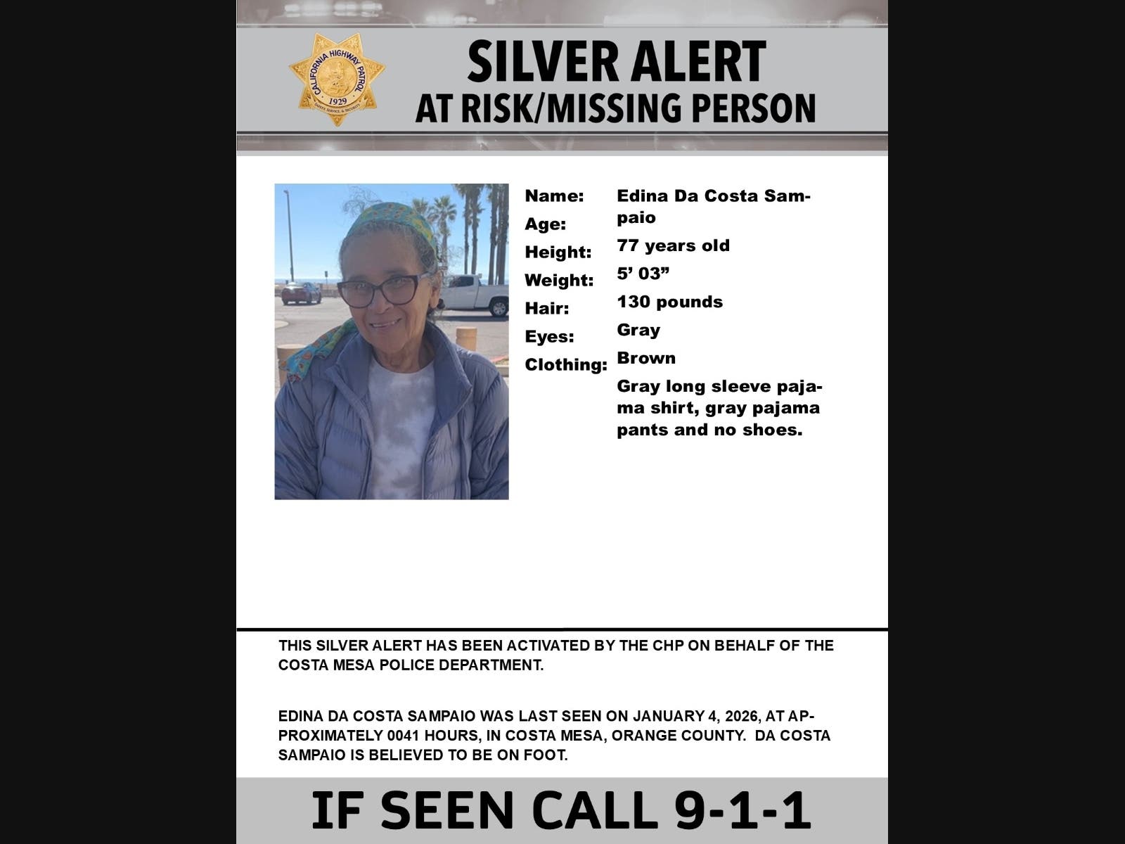Edina Da Costa Sampaio was last seen at about 12:40 a.m. Sunday, according to the California Highway Patrol, which activated the alert on behalf of the Costa Mesa Police Department.