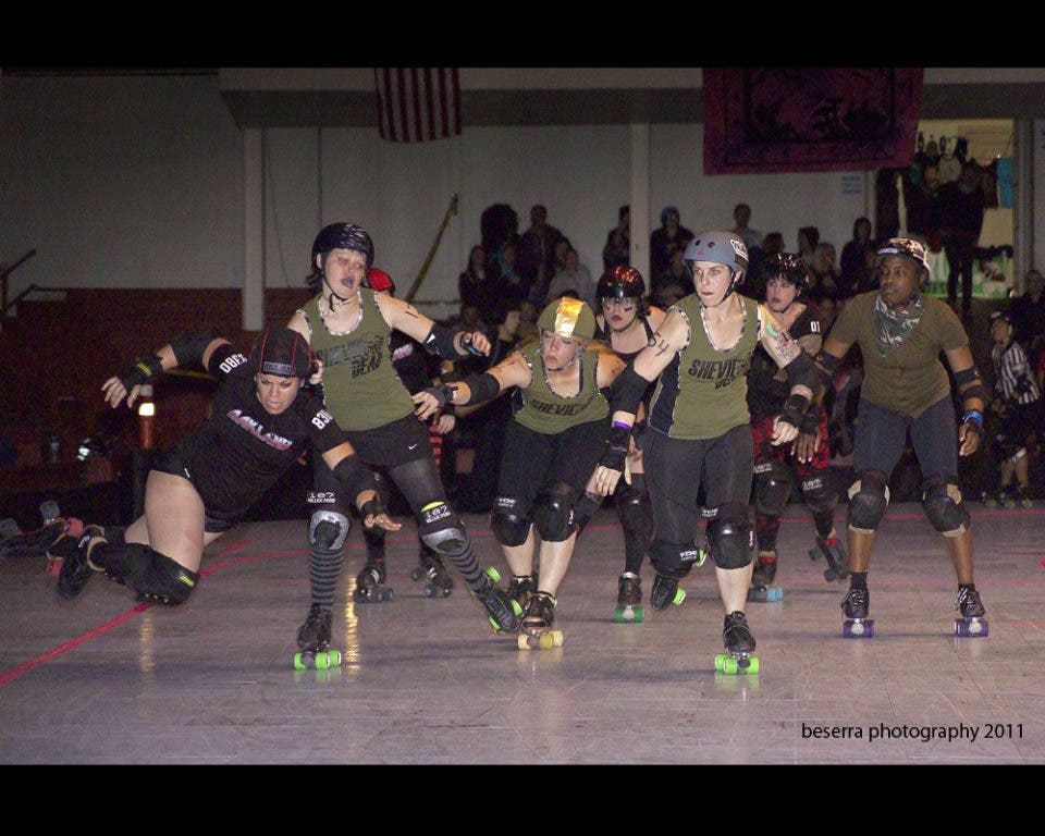 Come check out Wyatt Beserra collection of roller derby scenes at Family Room Community Acupuncture.