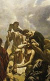 If you’re still standing steadily after absorbing those two paintings, you may be knocked out when you see Calvi di Bergolo’s depiction of early amputations. Imagine no anesthesia and being restrained by a group of men as you struggle to break free from this operation. Apparently, doctors during these ancient times developed an acute skill of speed accomplishing the amputation within thirty seconds.