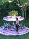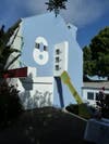 Artist Ed Massey likes color. His wife Dawn likes color. Apparently their children do, too. Their home originally built in 1948 was remodeled by award-winning architect Eric Owen Moss in the 1980s and is burbling with color starting with the intersecting royal blue circles painted on the entry pavers to the Alice-in-Wonderland like back yard. As wacky and whimsical as most of the home is, Massey's art sneaks in some pretty intense social commentary when you aren't looking.