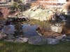 I have over the years seen them made in several ways. Some designers will basically create a pool, not as deep or wide, with concrete and rocks to resemble a pond found in nature. They will then place a pump in the bottom covered by rocks to create the circulation necessary to move water which of course will help with clarity and sound. Often they will extend the concrete and rocks to create a waterfall so that the volume of sound increases and the visual impact is greater. I maintain water features like these and though they are effective and can be visually attractive, often times you can see that they are concrete which diminishes the natural look. The care for this type of water feature can be more difficult to keep clear and clean. In the construction of this type of water feature, a liner has to be used under the concrete to create a non-leaking membrane because of the nature of concrete itself to expand and contract it can and will crack leading to leaks. I bring up the use of a liner because it has become the single most effective way to build a natural water feature.