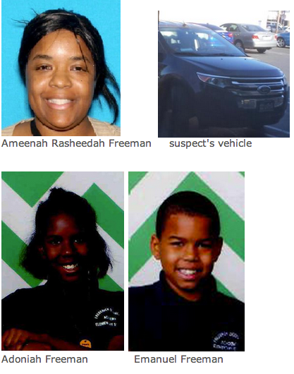 No amber alert was declared, but police urged anyone with information on the whereabouts of Ameenah Freeman or her children to contact Detective D. Johnson of the LAPD’s Southwest Station at (213) 485-6571 or through LAPDonline (click on “webtips” and follow the prompts).