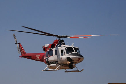 Los Angeles Fire Department helicopter-borne firefighters hoisting a 41-year-old man who was seriously injured while hiking on the Sullivan Canyon Trail in the Pacific Palisades, says spokesman Erik Scott.