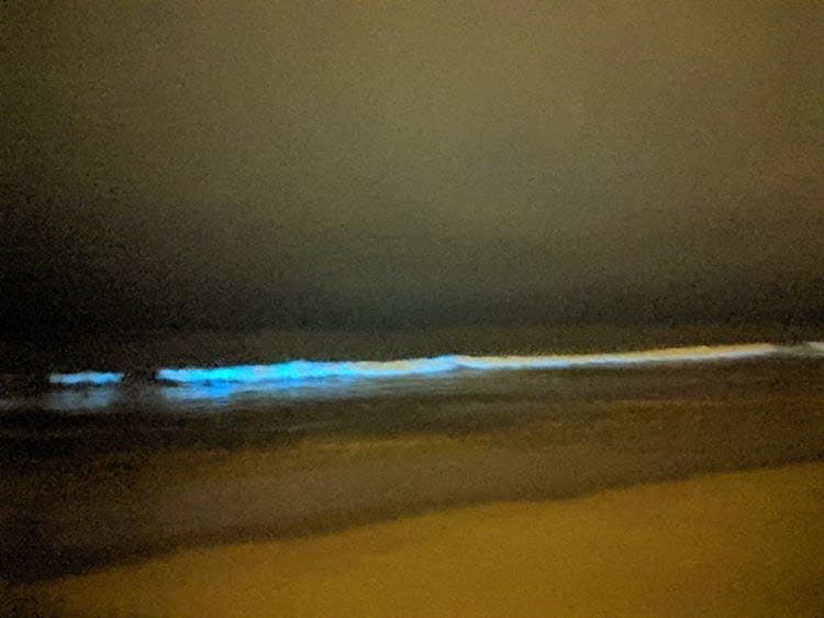 LOS ANGELES, CA — One of Southern California’s most stunning natural phenomena is lighting up Southern California’s coastline even as most beaches remain closed to the public. A massive algae bloom spanning the length of Southern California’s coastline has caused glowing blue waves to crash upon the shore at night from Los Angeles to San Diego for more than a week now.