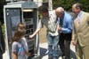 Councilman Bill Rosendahl helps dedicate the new light Thursday with parents and staff of the Westside Waldorf School and Palisades residents.