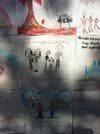As for the eye-catching part: A pair of dormant storefronts has been decorated with the art of students from neighboring schools.