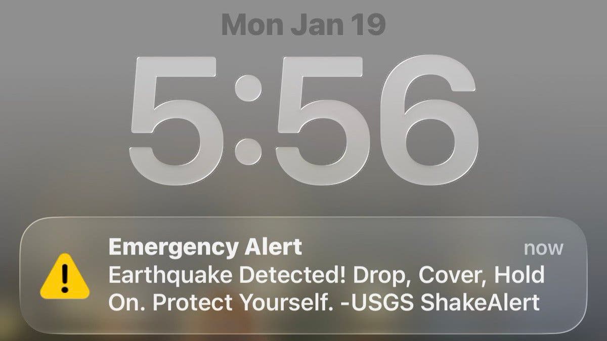 A loud alert, combined with a message on your phone, will tell you to "Drop, Cover, and Hold On" in advance of an earthquake.
