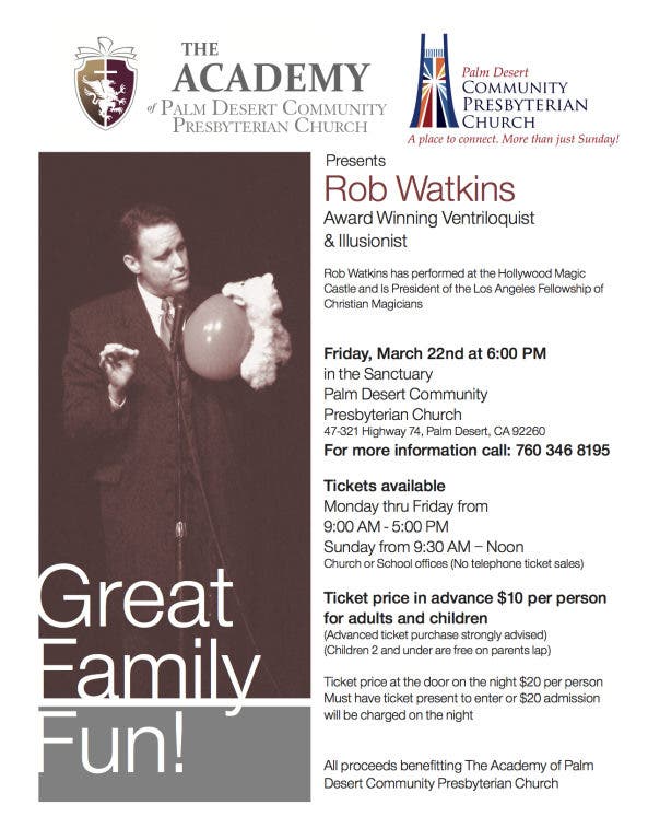 All proceeds benefitting The Academy of Palm Desert Community Presbyterian Church.
