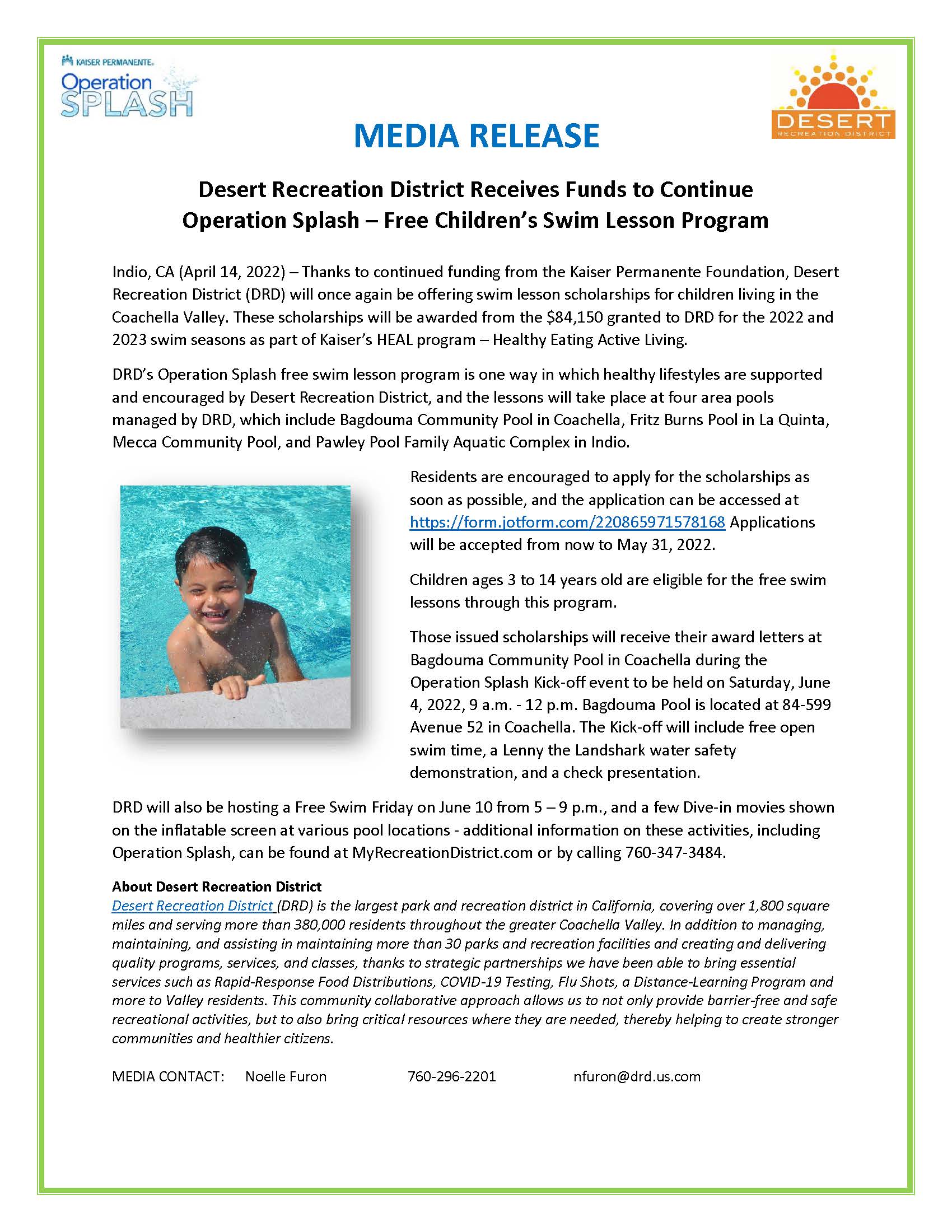 This press release was produced by Desert Recreation District. The views expressed here are the author's own.