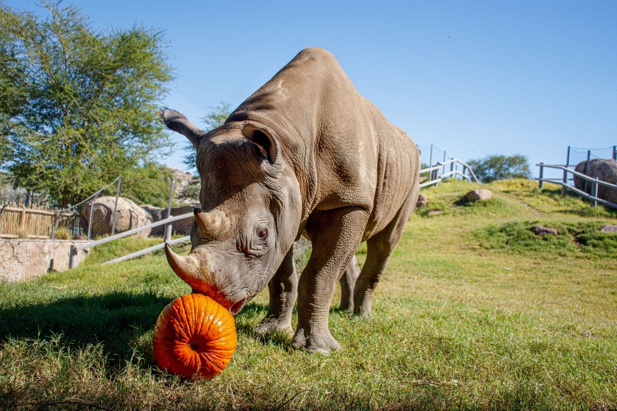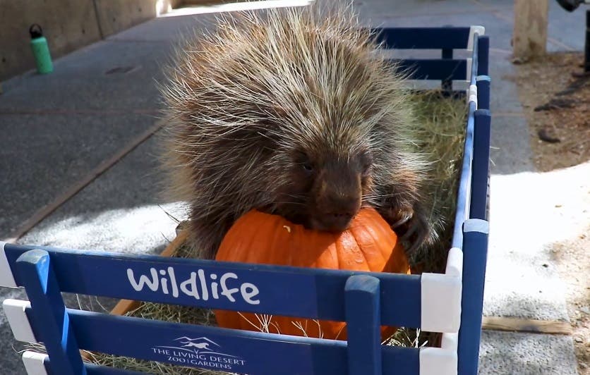 PALM DESERT, CA —Porcupines with pumpkins? Snakes slither through jack-o-lanters? It's that time of year again in Palm Desert. The Living Desert Zoo and Gardens residents recently got their annual pumpkin treat, to the delight of javelinas, reptiles, desert critters, birds, and rhinos.