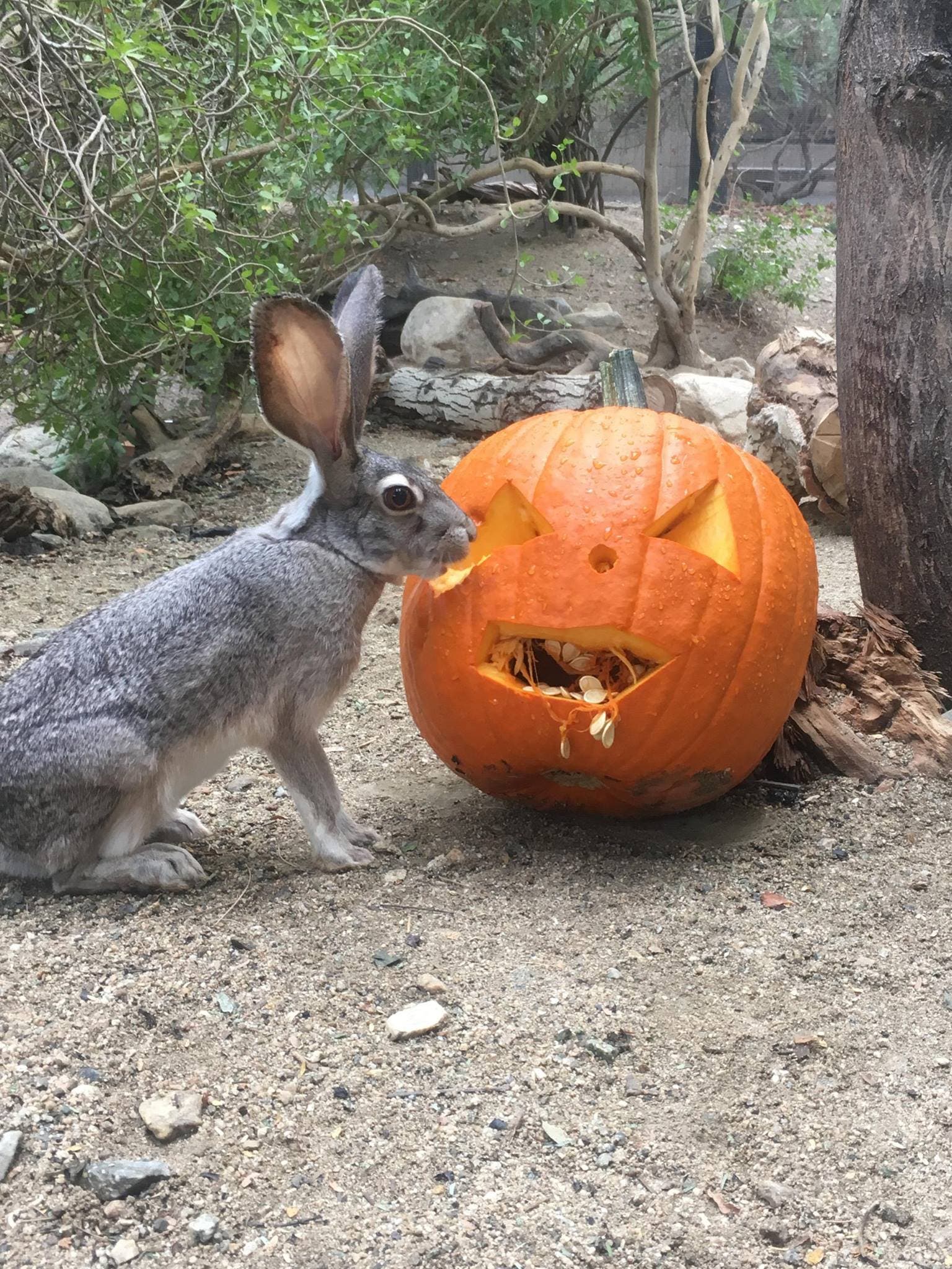 A pumpkin is rare sight, especially for desert creatures like this jackrabbit.