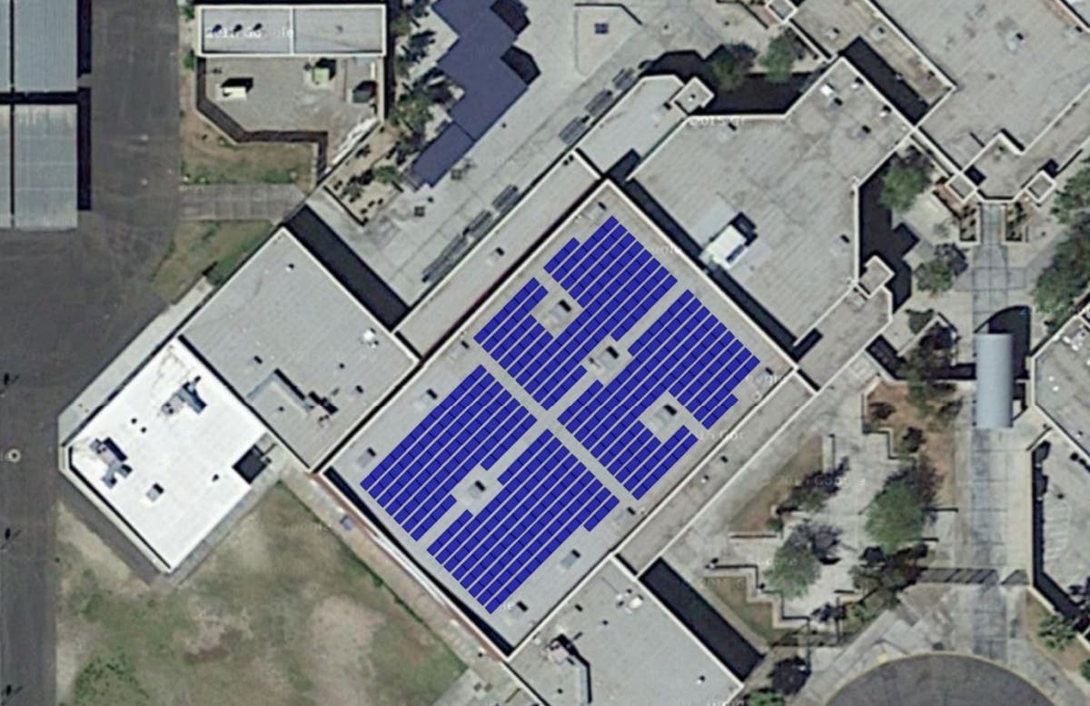Construction for the Cathedral City High School’s solar power system began on October 8, 2018. This exciting solar power addition to the high school was in response to the opening of the school’s long-awaited swimming pool. After 26 years of bussing the Cathedral City High School (CCHS) aquatic teams to and from the Palm Springs aquatic center, it was finally time for the CCHS Lions to train for swimming and water polo in their very own school pool. However, the school administration noted that the added benefit of a new pool on the CCHS campus would also bring added electric utility costs.