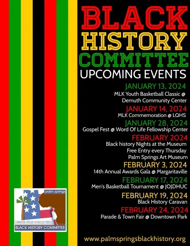 Other events held at various locations included the 37th annual Black History Month Awards Gala, amen's basketball tournament, and a Palm Springs Black History Caravan.