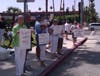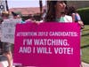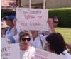 Over two dozen protestors paraded in front of the Palm Springs Hilton this morning, waving anti-Mary Bono Mack signs.