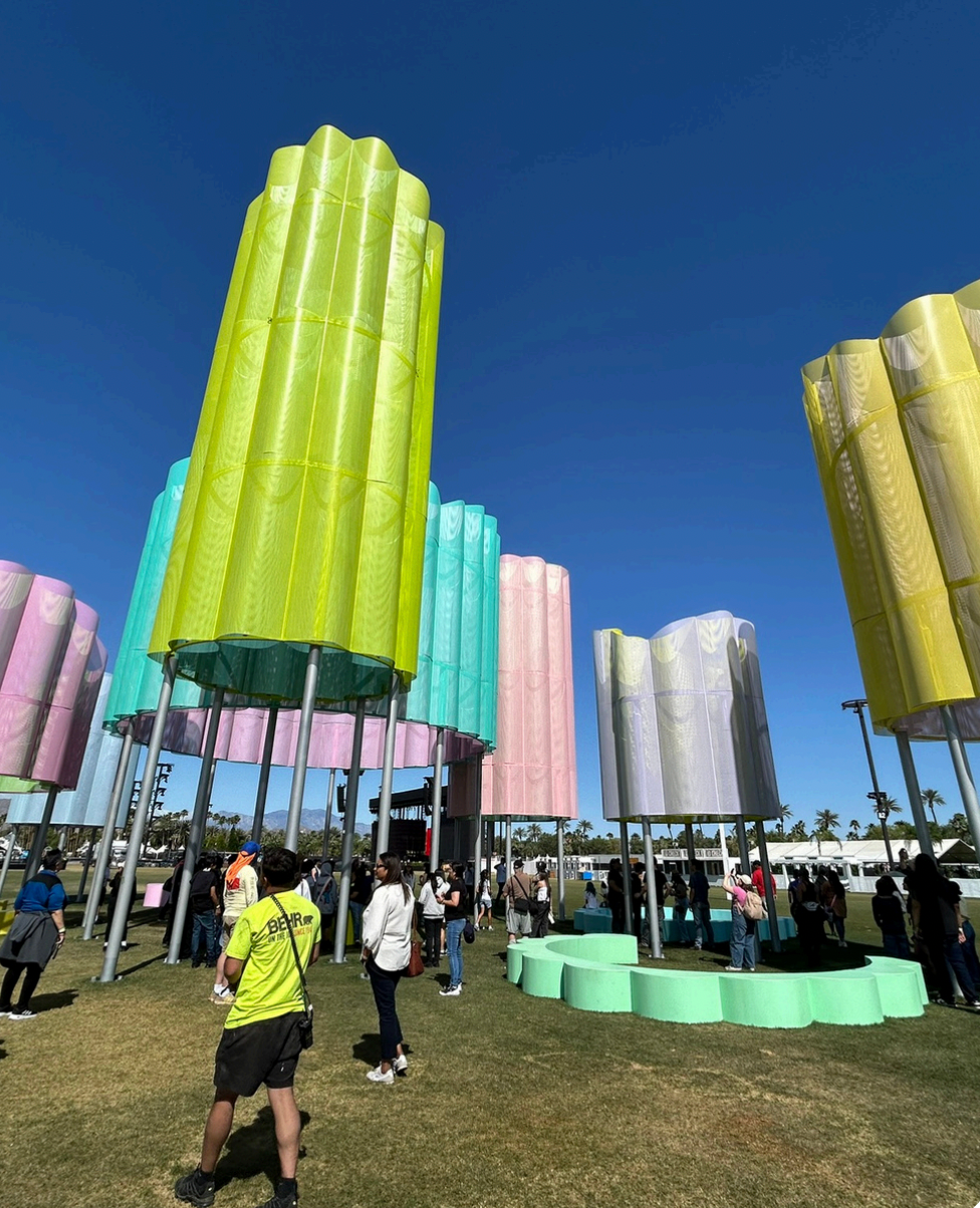 Curated by Raffi Lehrer of Public Art Company in collaboration with Goldenvoice Art Director Paul Clemente, the 2025 artworks installed at the music festival explored themes of movement, illusion, and impermanence.