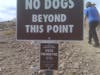 The sign, which reads "No Dogs Beyond This Point," was installed recently to replace a previous sign that had been vandalized, according to Jim Foot of the Bureau of Land Management.