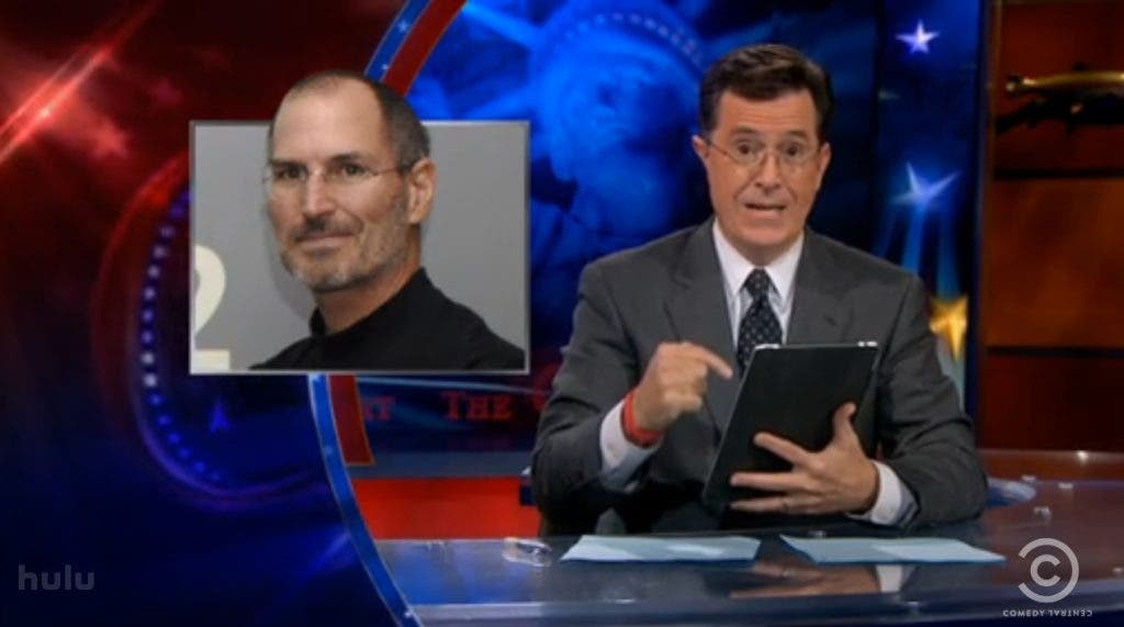 Steve Jobs received warm tributes from comedy king Stephen Colbert last night.
