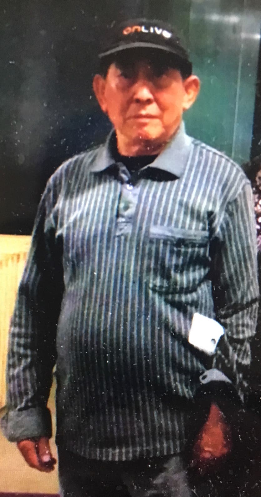 Yan, 79, only speaks Mandarin. He was last seen wearing a dark-colored baseball cap — the same one shown in the below photo — a long-sleeved striped shirt very similar to the one shown in the photo, and black pants.