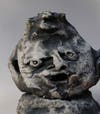 Francine Survilo chose Untitled for her work with clay and stain and in her statement she says “Sometimes I put water and fresh flowers in the empty space of these ceramic heads or sometimes dried weeds but most of the time it is left empty.”
