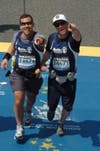 He was running the race by himself, but his friend Linda Mele of Charlestown, Mass. met him at mile 22, planning to run the last 4 miles with him.