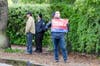 At 8:15 a.m., the stated gathering moment for the Keystone XL Pipeline protest at the corner of the Alameda and Valparaiso, there were a handful of people with umbrellas gathered under a tree near the Menlo Park Fire Station anticipating President Barack Obama's arrival.
