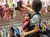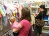 The ribbon was cut, and moms swarmed in to cash in on great deals on children's clothing for Blossom Beanstalk's first day of business Monday.