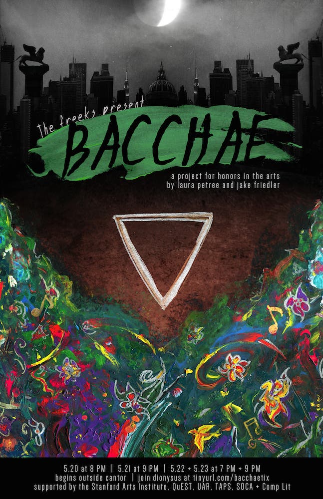 “This adaptation of The Bacchae translates Euripides’ classical tragedy into an immersive rave experience. The story of Dionysus’ revenge on Thebes will be poetically re-worked and set in a Stanford that is at once contemporary and mythical, refracting modern rave culture through the lens of ancient myth to reveal how Dionysian religion lives on today.
