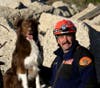 The dogs are well-trained to bark if they find a victim who needs rescuing. Each dog is paired with a firefighter handler from the Los Angeles area.