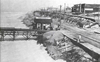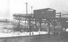 The Center street pier was believed to have been 900-feet long. Pylons were made by fastening three railroad rails together and driving them into the ocean floor. A narrow wooden deck was supported by these pilings. A wave machine was installed at the foot of the pier in order to generate electricity for the lighting system on the Strand but the plan did not work. The "old iron pier" as it was called, was destroyed by a major storm in 1913