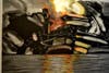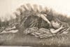 Requiem, at 30 inches by 42 inches very large for such a labor-intensive work, looks like a rocky cliffside from a distance, but up close it becomes clear some of the rocks are tiny human figures.