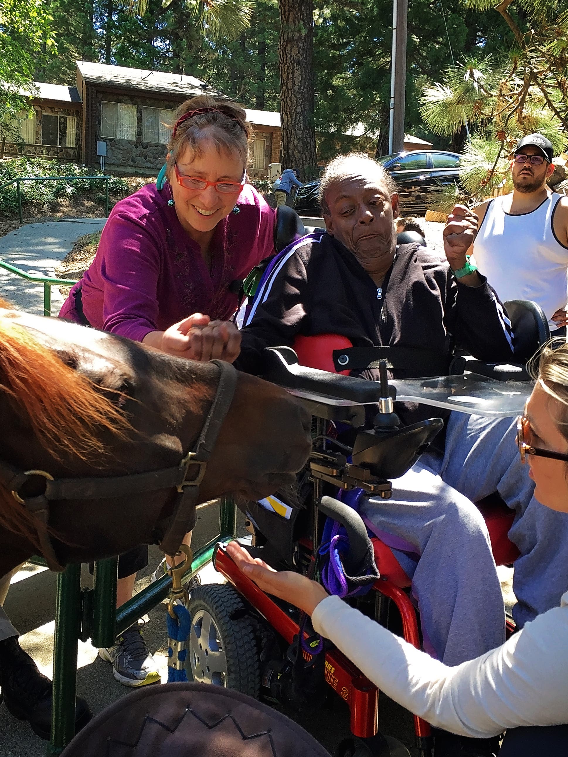 Camp Paivika is a fully-accessible camp in Crestline running multiple sessions during the summer months for children and adults with disabilities, and it is also available for rentals in the off-season. During her first of three consecutive summers working at camp, Leslie met camper Elissa Nadel. “I had never met anyone who was non-verbal, but Elissa and I ended up communicating for hours and she suggested that when summer session ended I apply for a position with the United Cerebral Palsy Foundation in Sylmar.” On Leslie’s first day working at the Foundation, she met Kathy Braxton.