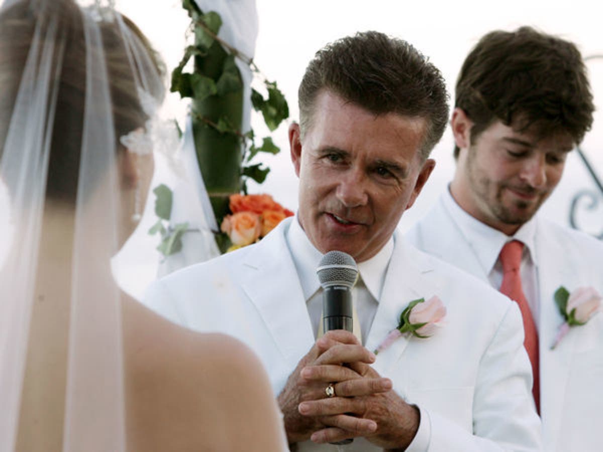 City News Service / Photo: Actor/producer Alan Thicke exchanges vows with model Tanya Callau during their wedding on May 7, 2005 at The One & Only Pamilla Resort in Cabo San Lucas, Mexico. At right is Thicke's son Robin. (Photo by Vince Bucci/Getty Images)