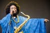 Pharaoh Sanders played his saxophone with a longing, sadness and intensity that juxtaposed the smiling crowd and breezy day. Standing in crisp white linen, Sanders sang worship phrases such as "the power of God," although he looked heavenly himself.