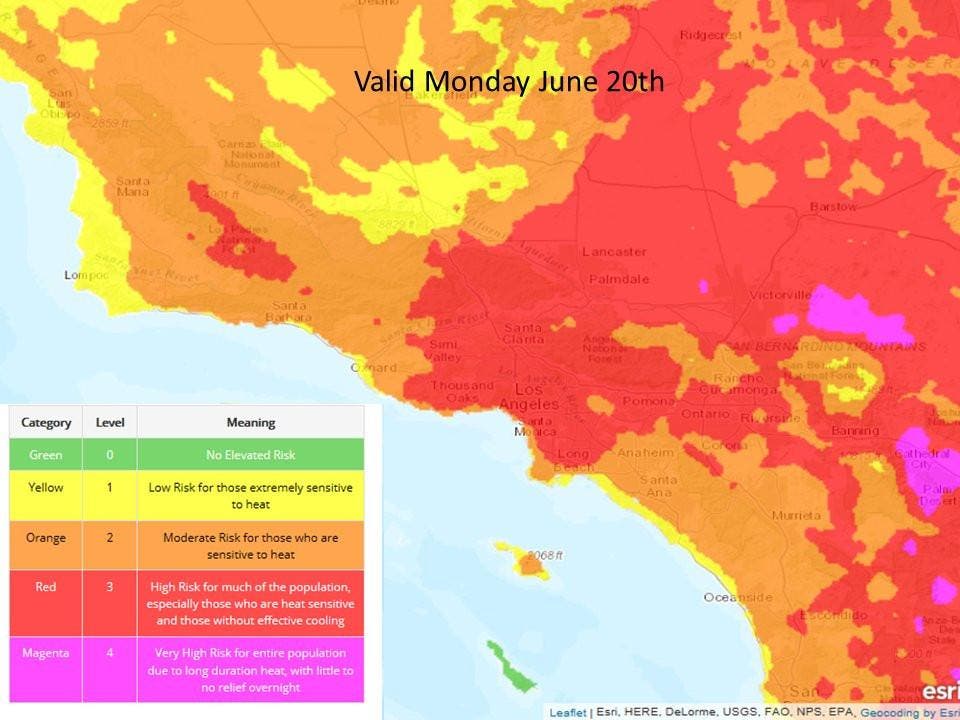 This upcoming week’s “dangerously hot conditions” will result from “an extremely strong area of high pressure” over Arizona and New Mexico, the NWS said. Minor relief was expected in coastal and valley areas beginning Tuesday, but the San Gabriel Mountains and the Santa Clarita Valley were to remain dangerously hot.