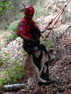 ALTADENA, CA – Volunteers with the Altadena Mountain Rescue Team Friday saved a puppy that ended up stranded on a cliff in Las Flores Canyon in Angeles National Forest after tumbling down a hillside while chasing something.