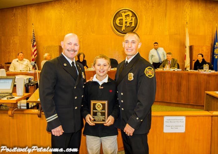 Joe Kelly was presented with the Citizen-In-Action award by the Petaluma Fire Department at the Petaluma City Council meeting last night.