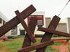 When you see a huge steel art installation wrapped in orange plastic fencing in the middle of a high school campus, where for decades “temporary” classrooms stood, it makes you kind of wonder.