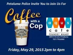 This Friday, May 29th from 2pm to 4pm, the Aqus Cafe will host Petaluma PD’s first Coffee with a Cop event.