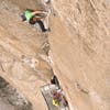 The climbing partners are scaling the world's largest granite monolith using ropes and pins only for safety.