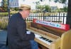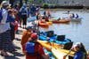 The docks were filled with first timers and returning kayakers and rowers enjoying clear, sunny skies and calm waters at the downtown Petaluma waterway. There was also piano music provided by Petaluma Pete, who hauled his upright next to the lagoon-type setting and wore his straw hat and his traditional white gloves.