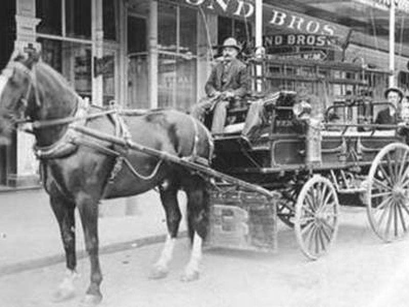 --Image of James Mott and the fire department’s horse, Black Bart, in 1909 via Petaluma FD
