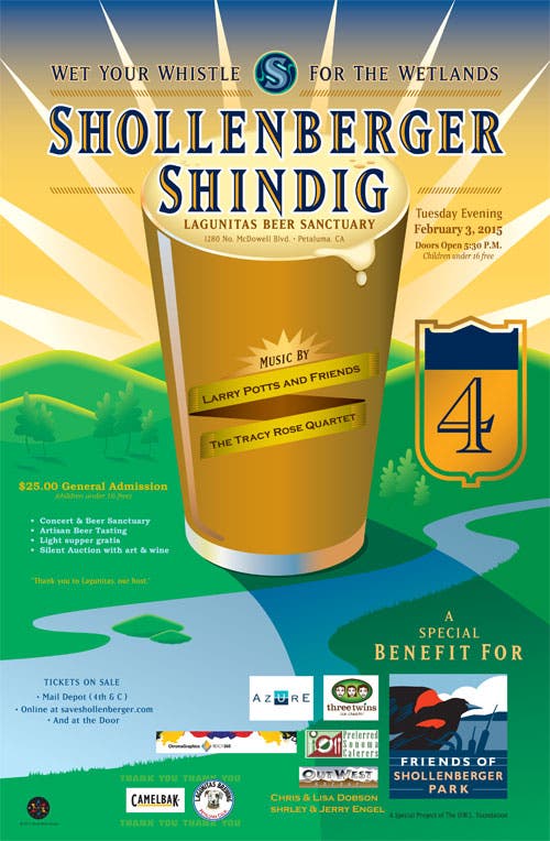 The Shollenberger Shindig is Tuesday evening February 3 starting at 5:30PM at Lagunitas Beer Sanctuary.
