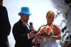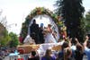 That Petaluma love story continued this year, and the couple and the wedding party rode in the parade on the KZST Radio float, a local radio station. Daniel Goodwin and Megan Collett were married, and as thousands looked on as they said their vows, the parade was brought to a standstill.