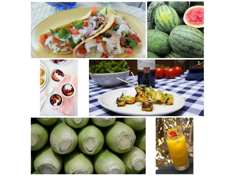 Here are our top summer recipes, including grilled fruit, fish tacos, wine potato salad. And tricks to slice watermelon and shuck corn!